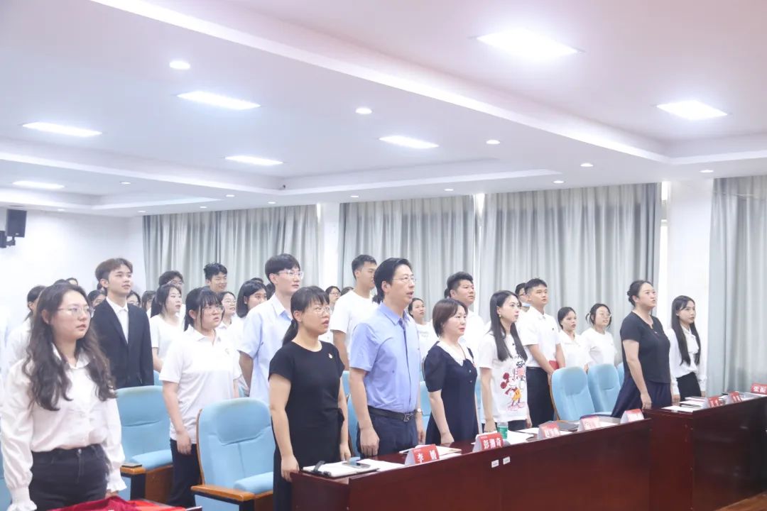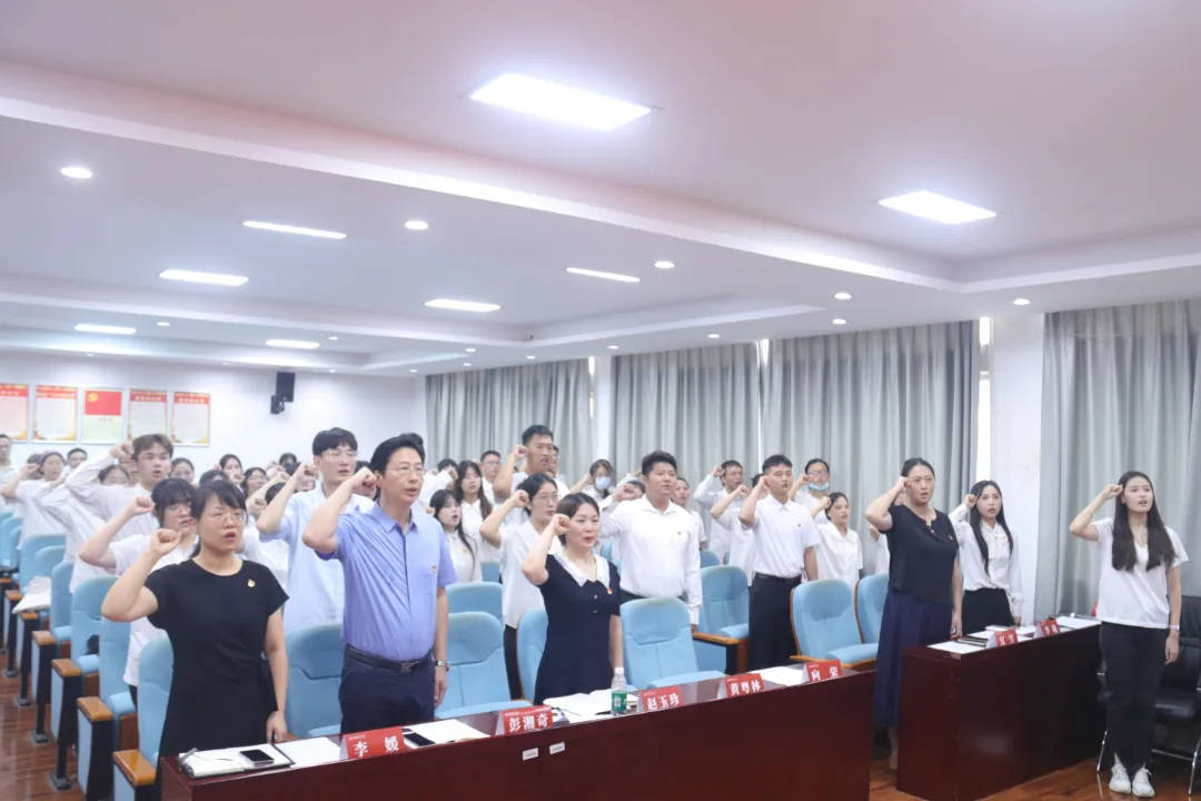为进一步加强对新发展党员的党性教育,让预备党员通过入党宣誓,表明对党的事业的忠诚,增强党员的光荣感和使命感,铭记党员责任与义务,努力践行初心使命,在中国共产党建立103周年之际,英国365集团党委于7月1日在八教北408会议室召开新党员入党宣誓大会。英国365集团党委书记赵玉珍、副书记彭湘奇、全体学生党支部书记、学生党员代表、入党积极分子代表和全体预备党员参加会议。英国365集团本科生第一党支部党员孙璇主持会议。