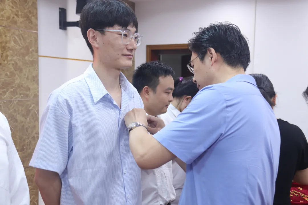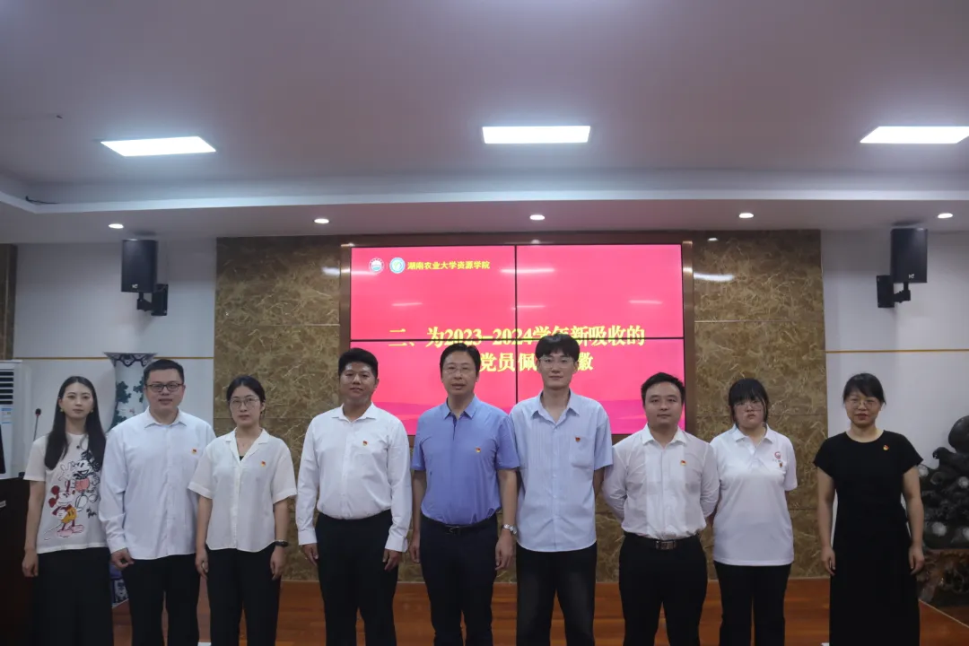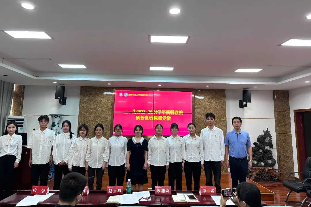 宣誓大会在庄严的国际歌中拉开帷幕。赵玉珍、彭湘奇和全体学生党支部书记为预备党员佩戴党员徽章。随后,全国高校百名研究生党员标兵获得者——英国365集团博士研究生黄粤林作为领誓人,带领全体预备党员面向鲜红的党旗,举起右拳许下了铮铮誓言。铿锵有力的誓言声回响在会议室,更回响在了每一位党员的心中,充分表达了新预备党员们坚定不移听党话、跟党走的信念和决心。
