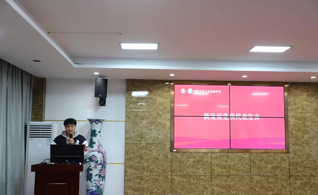 随后,研究生第一支部预备党员赵晨博作为新发展党员发言,他表示将以此次宣誓为新的起点,牢记党的嘱托,努力学习专业知识,提高自身素质,在今后的学习、工作和生活中,时刻以党员标准严格要求自己,努力提高为人民服务的本领。