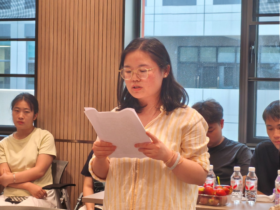 会议伊始,支部书记张振华做开场主持,他表示:本次党日活动以‘初心如磐 笃行致远’为主题,既是对毕业生党员的临别寄语,更是对全体党员的党性淬炼。同时,张振华书记对毕业生党员提出三点期许:一要以信念锚定航向,将入党誓词铭刻于心;二要以奋斗砥砺征程,把论文写在祖国大地上;三要以担当诠释忠诚,让青春脉搏与时代同频。下面,毕业生党员代表结合自身科研和成长经历分享她们的初心故事与远征誓言。