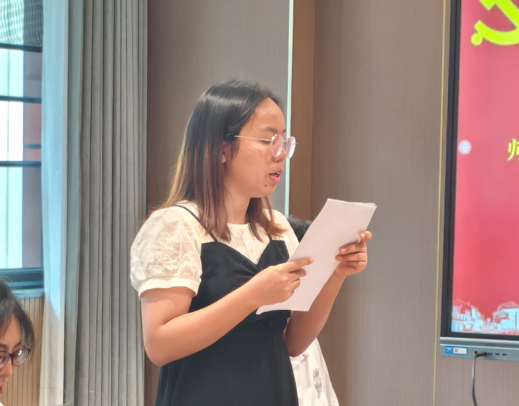 毕业生党员代表、支部副书记邹颜竹硕士表示,3年的研究生生活即将画上句点,我们即将各自奔赴新的生活,适应新的岗位。希望各位毕业生党员牢记习近平总书记对青年学子的寄语:志存高远,脚踏实地。将个人发展融入到民族复兴的伟大历史进程中,乘势而上;与国家和民族同呼吸共命运,同频共振。