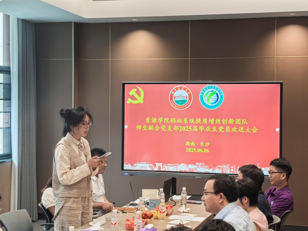 本次主题党日活动既是对毕业生党员的深情送别,更是对全体党员的集体动员。支部师生党员、积极分子表示将以此次党日活动为契机,持续深化“初心如磐”的政治自觉,增强“笃行致远”的行动担当,将“把论文写在祖国的大地上”的科研精神融入血脉,在服务国家粮食安全战略中谱写新时代湘农青年的青春华章!