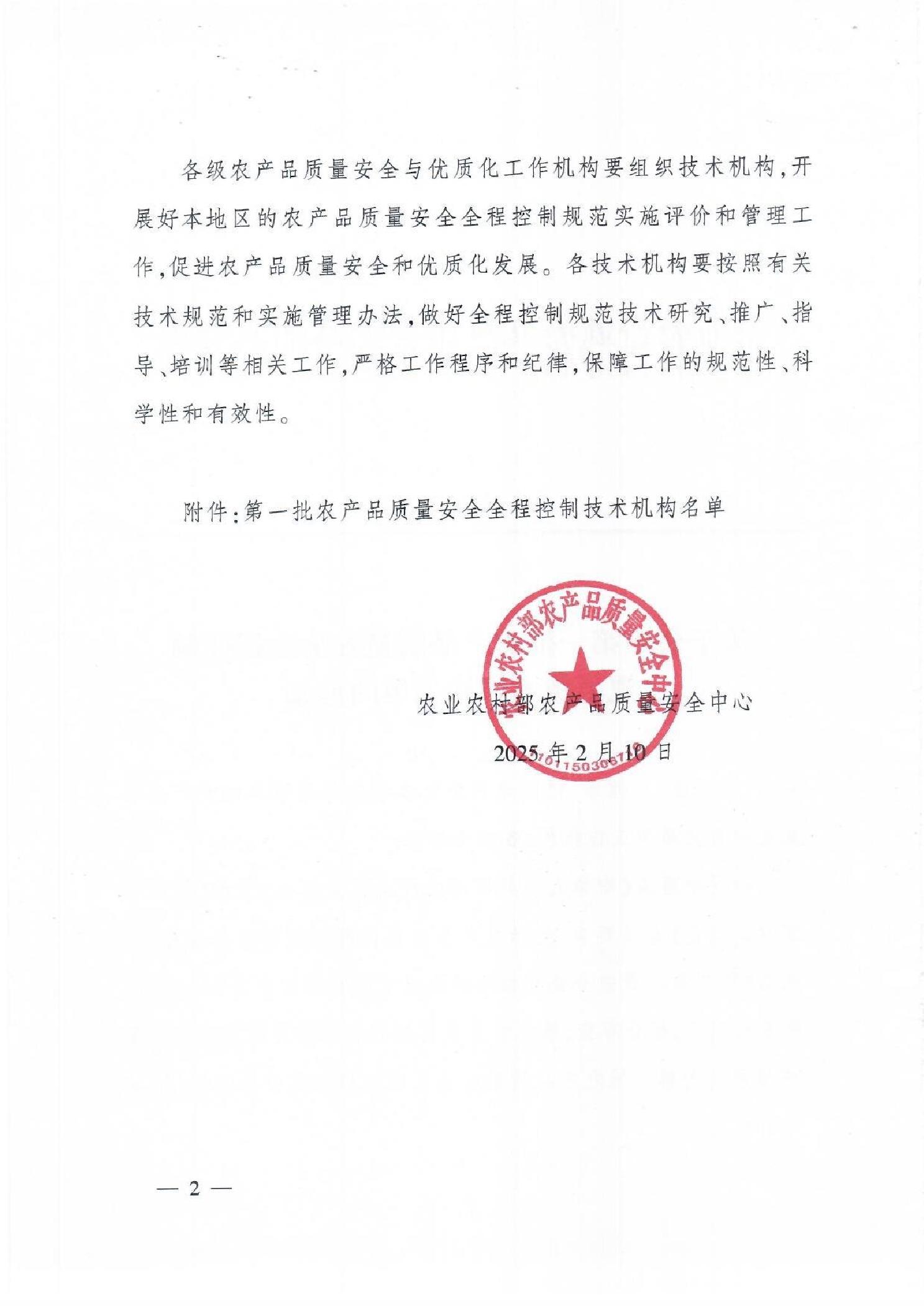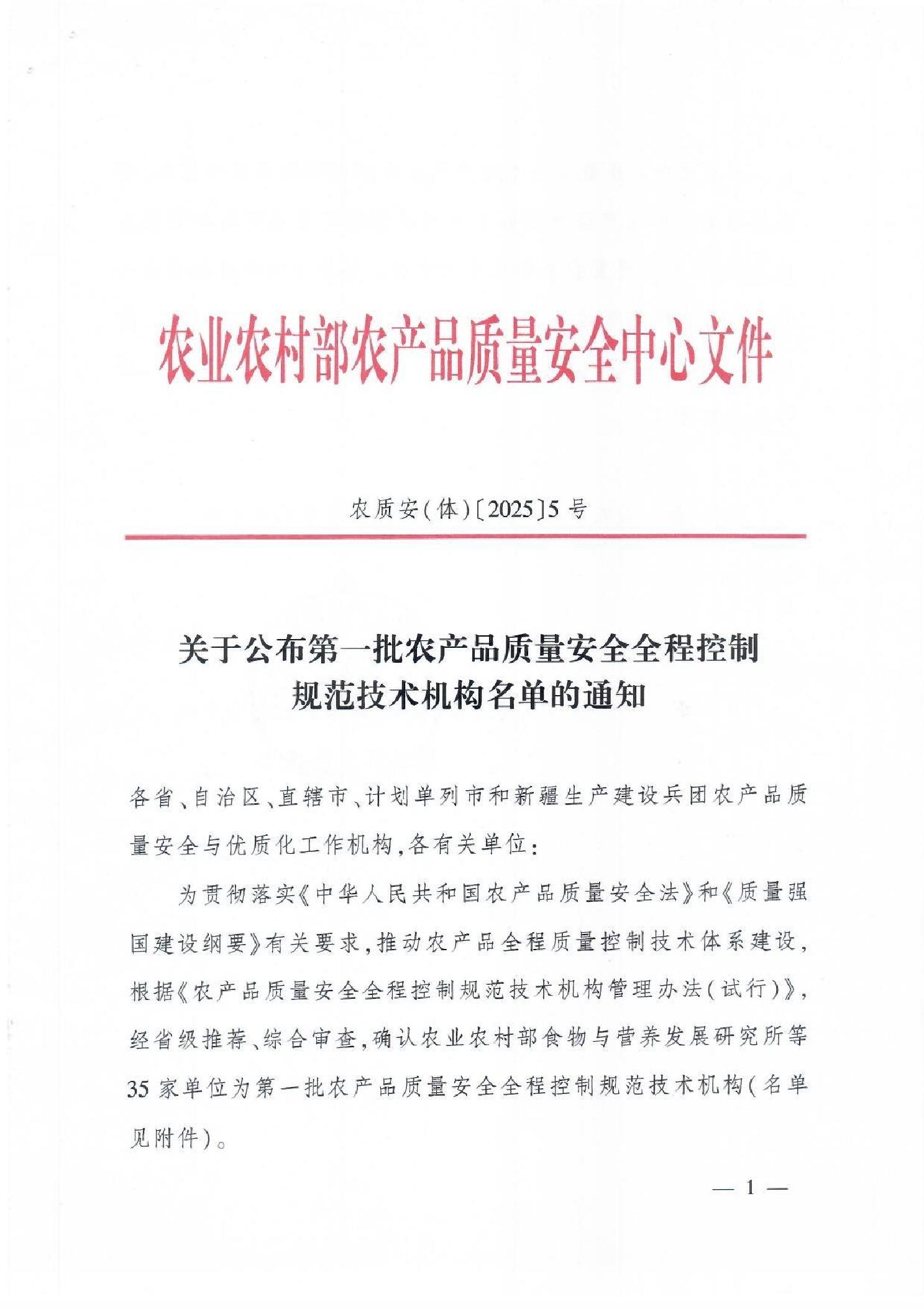 我院获批农业农村部农产品质量安全全程控制规范机构