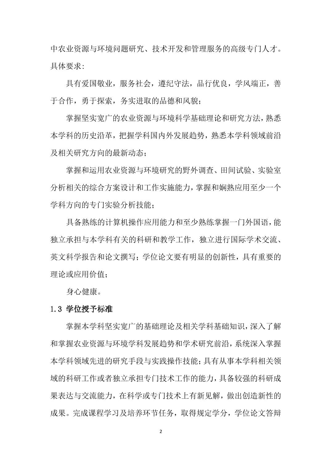 农业资源与环境学位授权点建设年度报告(2020 年)