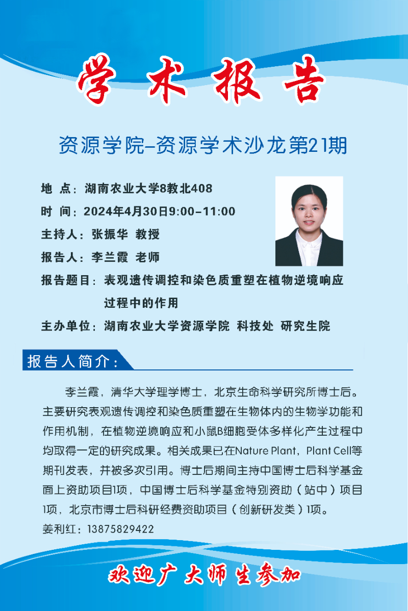 资源学术沙龙第21期-表观遗传调控和染色质重塑在植物逆境响应过程中的作用