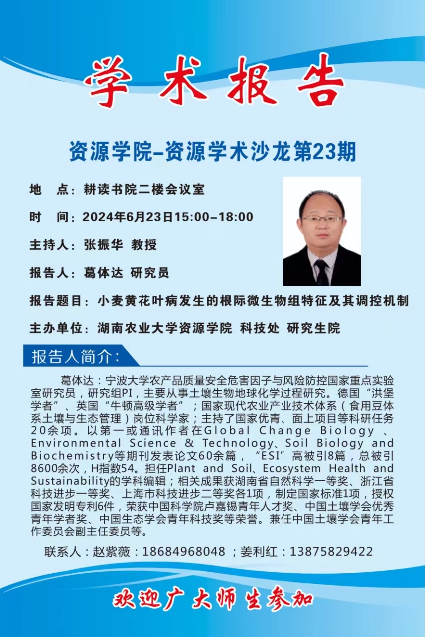 资源学术沙龙第23期-小麦黄花叶病发生的根际微生物组特征及其调控机制