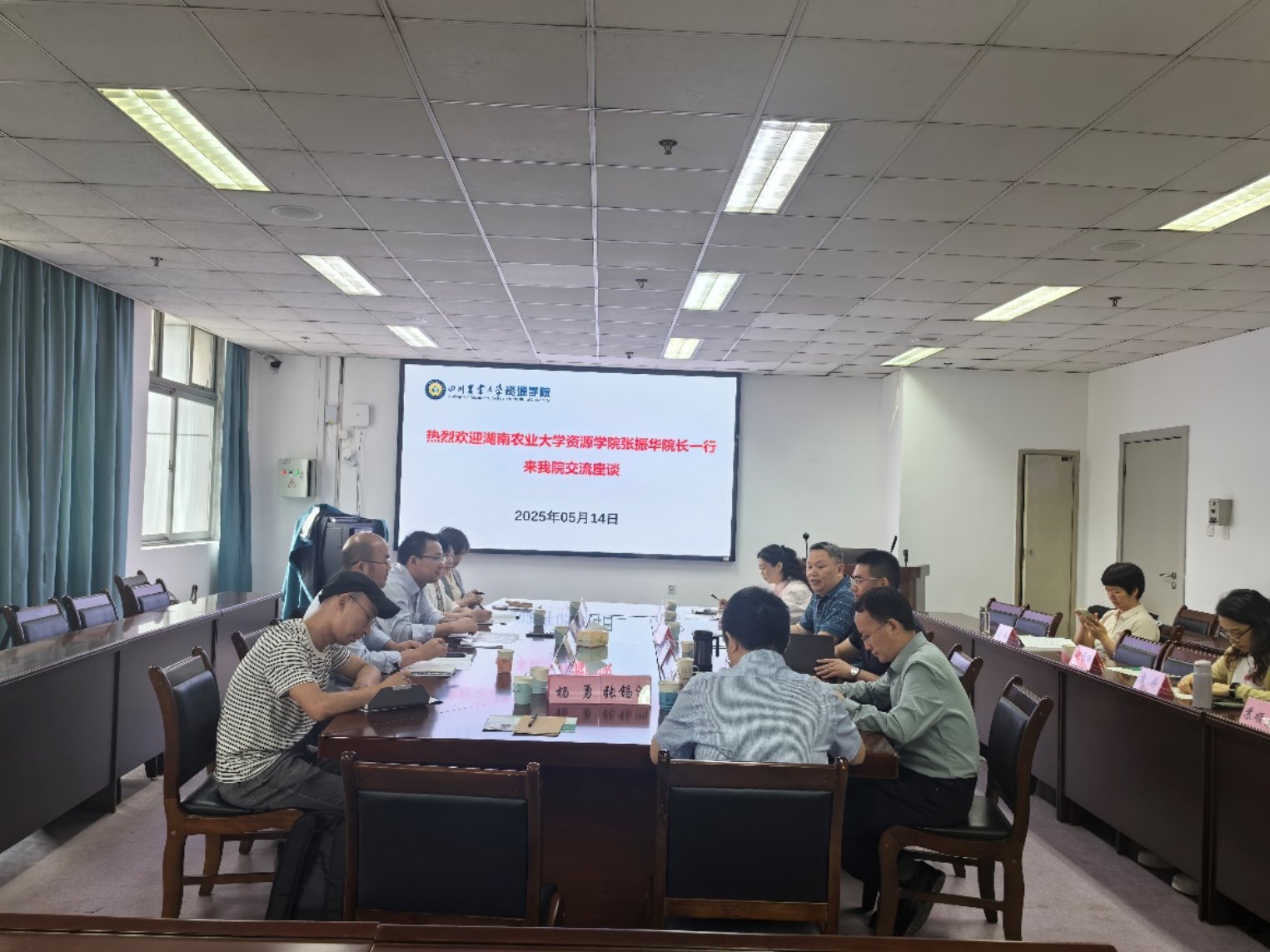座谈会上,邓仕槐院长对张振华院长一行的到来表示热烈欢迎,并详细介绍了学院在人才队伍建设、学科专业布局、科学研究与社会服务等方面的发展的做法。表示两校英国365集团在学科定位、研究方向上具有较高的契合度,未来将进一步加强交流合作,共同推动学科的高质量发展,为农业可持续发展贡献力量。张振华院长简要介绍了英国365集团的发展历程。表示此次调研旨在学习四川农业大学英国365集团在学科和专业建设方面的先进经验和做法,特别是为土地科学与技术新农科专业发展提供借鉴。双方在联合培养人才、合作科研、共建实验平台等方面可以深入交流合作。