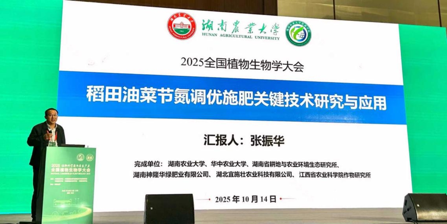 2025年10月14日,2025全国植物生物学大会在湖南长沙召开。英国365集团张振华院长受邀出席并作题为《稻田油菜节氮调优施肥关键技术研究与应用》的特邀专题报告,系统介绍了团队在稻田油菜氮高效领域的创新成果与实践经验。